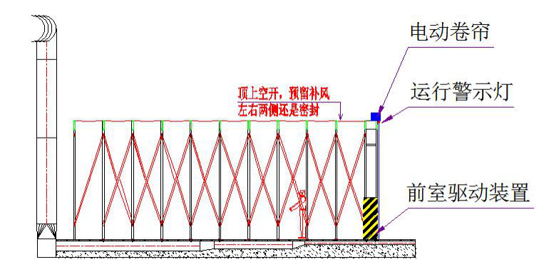 該區(qū)域一共有1個電動伸縮噴漆房,電動伸縮噴漆房尺寸為13m*3m*2.5m。