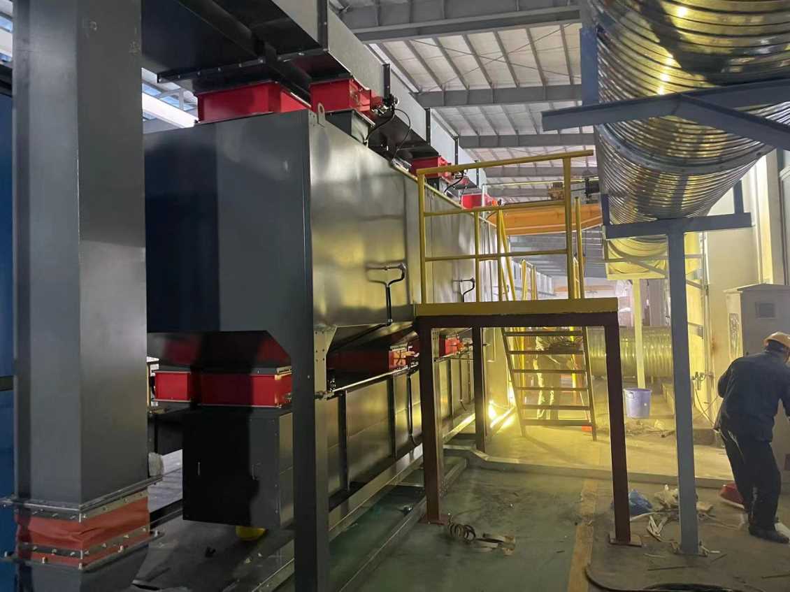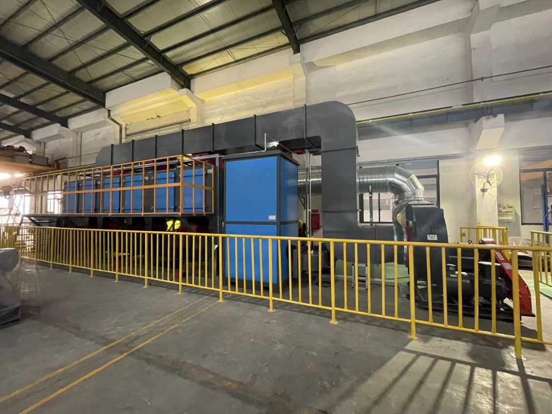 移動伸縮房 → 干式漆霧凈化墻 → 管路收集 → 干式過濾 → 活性炭吸附脫附催化燃燒設(shè)備→風(fēng)機 → 達(dá)標(biāo)排放