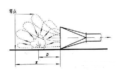 通:就是廢氣能暢通地被吸走。通常物料從高處落地時(shí),會(huì)向四面散發(fā),此時(shí),廢氣的散發(fā)速度稱為飛揚(yáng)速度。物料落點(diǎn)處的廢氣飛揚(yáng)速度最大。隨著廢氣散發(fā)距離的增加,達(dá)到一定距離后,其散發(fā)速度為零。當(dāng)廢氣散發(fā)速度較大時(shí),不容易被捕集。而散發(fā)速度達(dá)到零時(shí),廢氣被捕集就容易得多了。速度達(dá)到零點(diǎn)的那一點(diǎn)稱為控制點(diǎn),控制點(diǎn)到集氣罩口的距離為x,廢氣源至集氣罩口的距離為D,如下圖所示。